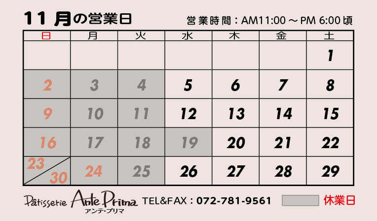 10月の営業カレンダー
